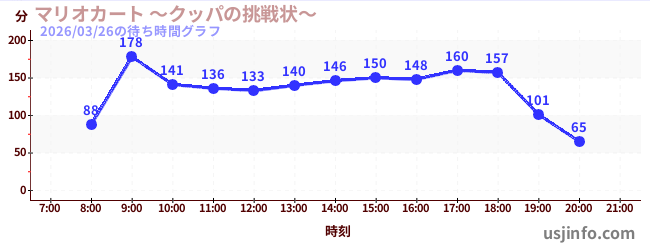 • マリオカート ~クッパの挑戦状~$B$N(B2026年03月26日の待ち時間