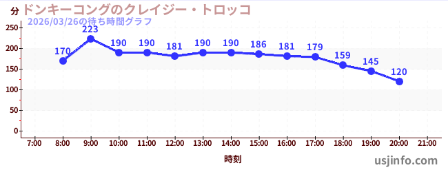 • ドンキーコングのクレイジー・トロッコ$B$N(B2026年03月26日の待ち時間