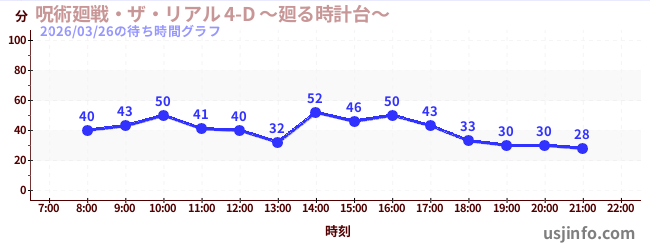 • 呪術廻戦・ザ・リアル 4-D ~廻る時計台~$B$N(B2026年03月26日の待ち時間