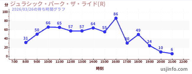 • ジュラシック・パーク・ザ・ライド(R)$B$N(B2026年03月26日の待ち時間