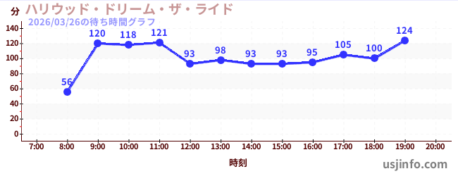 • ハリウッド・ドリーム・ザ・ライド$B$N(B2026年03月26日の待ち時間