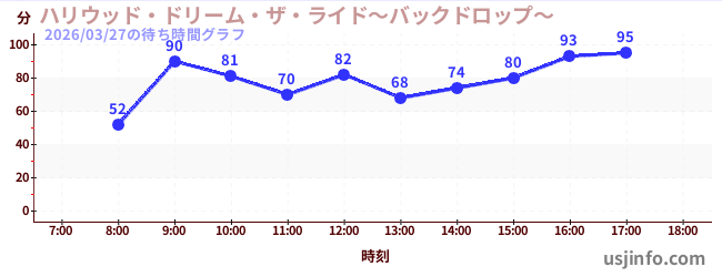 • ハリウッド・ドリーム・ザ・ライド〜バックドロップ〜$B$N(B2026年03月27日の待ち時間