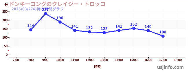 • ドンキーコングのクレイジー・トロッコ$B$N(B2026年03月27日の待ち時間