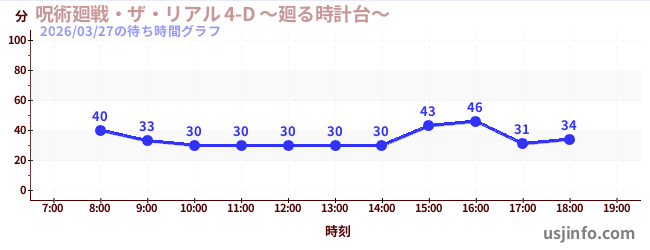 • 呪術廻戦・ザ・リアル 4-D ~廻る時計台~$B$N(B2026年03月27日の待ち時間