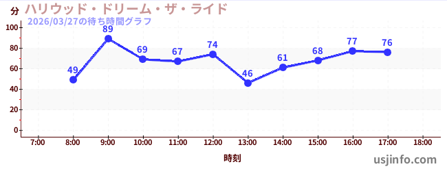 • ハリウッド・ドリーム・ザ・ライド$B$N(B2026年03月27日の待ち時間
