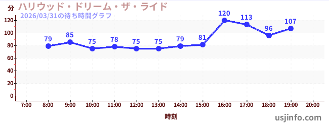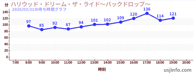 • ハリウッド・ドリーム・ザ・ライド$B$N(B2026年03月31日の待ち時間