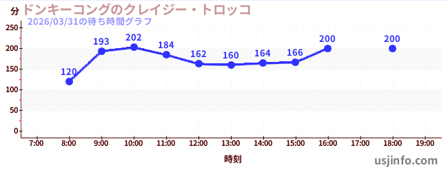 • ドンキーコングのクレイジー・トロッコ$B$N(B2026年03月31日の待ち時間