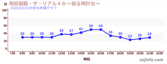 • 呪術廻戦・ザ・リアル 4-D ~廻る時計台~$B$N(B2026年03月31日の待ち時間