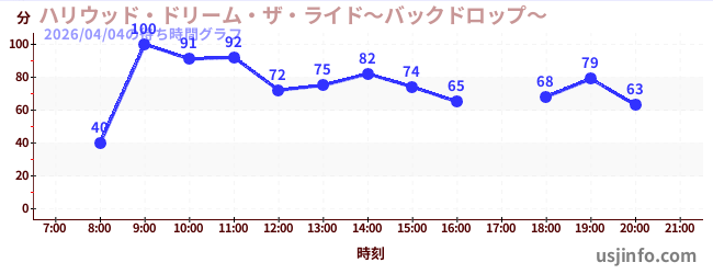 • ハリウッド・ドリーム・ザ・ライド〜バックドロップ〜$B$N(B2026年04月04日の待ち時間
