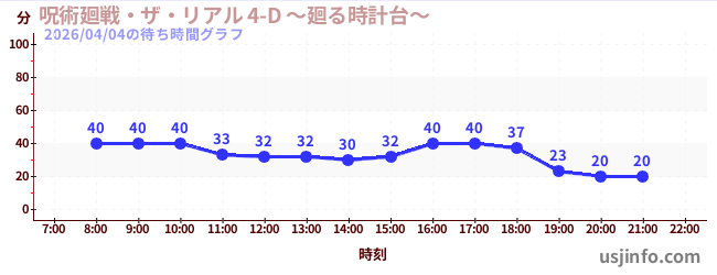 • 呪術廻戦・ザ・リアル 4-D ~廻る時計台~$B$N(B2026年04月04日の待ち時間