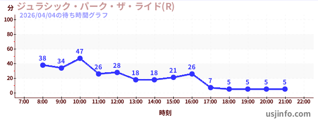 • ジュラシック・パーク・ザ・ライド(R)$B$N(B2026年04月04日の待ち時間