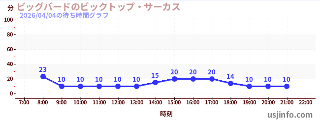 • ビッグバードのビックトップ・サーカス$B$N(B2026年04月04日の待ち時間