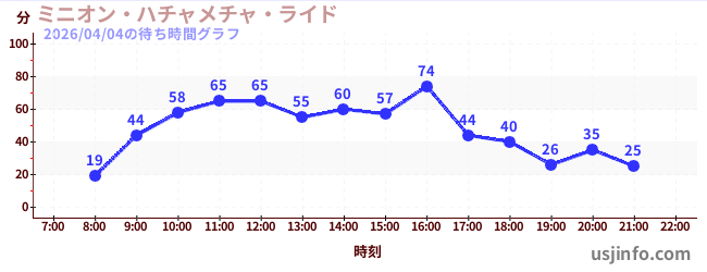 • ミニオン・ハチャメチャ・ライド$B$N(B2026年04月04日の待ち時間