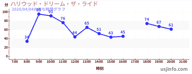 • ハリウッド・ドリーム・ザ・ライド$B$N(B2026年04月04日の待ち時間