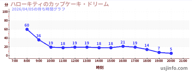 • ハローキティのカップケーキ・ドリーム$B$N(B2026年04月05日の待ち時間