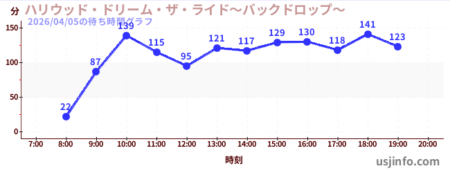 • ハリウッド・ドリーム・ザ・ライド〜バックドロップ〜$B$N(B2026年04月05日の待ち時間