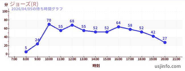 • ジョーズ(R)$B$N(B2026年04月05日の待ち時間