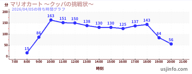 • マリオカート ~クッパの挑戦状~$B$N(B2026年04月05日の待ち時間