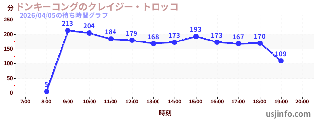 • ドンキーコングのクレイジー・トロッコ$B$N(B2026年04月05日の待ち時間