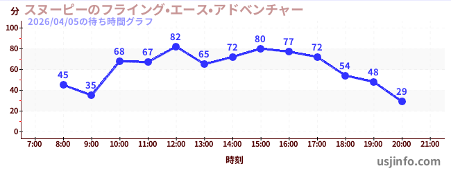 • スヌーピーのフライング•エース•アドベンチャー$B$N(B2026年04月05日の待ち時間