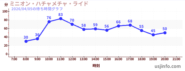 • ミニオン・ハチャメチャ・ライド$B$N(B2026年04月05日の待ち時間