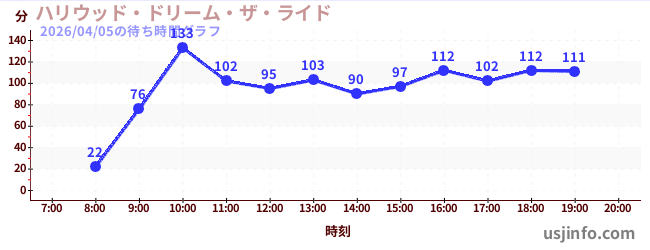 • ハリウッド・ドリーム・ザ・ライド$B$N(B2026年04月05日の待ち時間