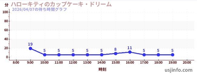• ハローキティのカップケーキ・ドリーム$B$N(B2026年04月07日の待ち時間