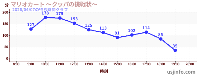 • マリオカート ~クッパの挑戦状~$B$N(B2026年04月07日の待ち時間
