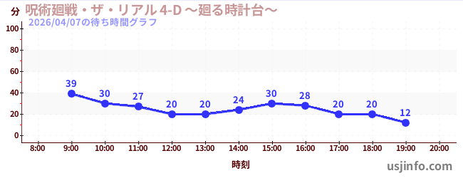 • 呪術廻戦・ザ・リアル 4-D ~廻る時計台~$B$N(B2026年04月07日の待ち時間
