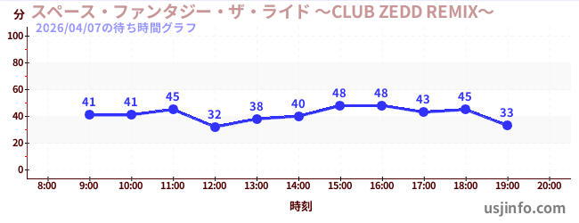 • スペース・ファンタジー・ザ・ライド ~CLUB ZEDD REMIX~$B$N(B2026年04月07日の待ち時間