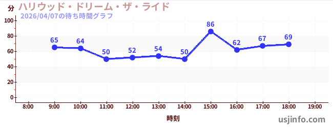 • ハリウッド・ドリーム・ザ・ライド$B$N(B2026年04月07日の待ち時間
