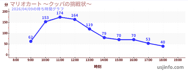 • マリオカート ~クッパの挑戦状~$B$N(B2026年04月09日の待ち時間