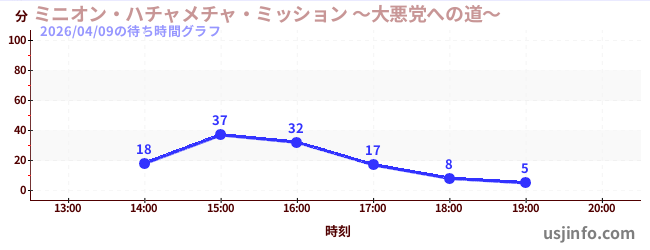 • ミニオン・ハチャメチャ・ミッション ~大悪党への道~$B$N(B2026年04月09日の待ち時間