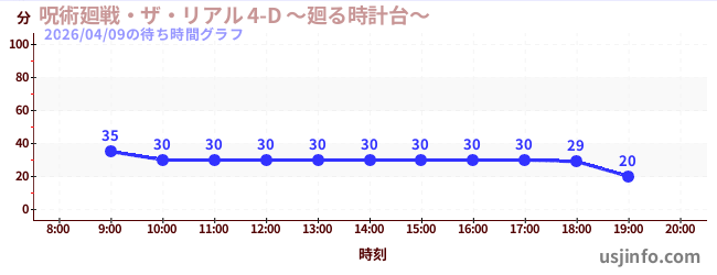 • 呪術廻戦・ザ・リアル 4-D ~廻る時計台~$B$N(B2026年04月09日の待ち時間
