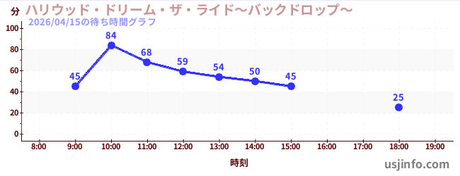 • ハリウッド・ドリーム・ザ・ライド〜バックドロップ〜$B$N(B2026年04月15日の待ち時間