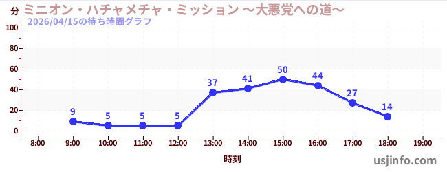 • ミニオン・ハチャメチャ・ミッション ~大悪党への道~$B$N(B2026年04月15日の待ち時間