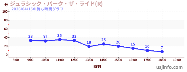 • ジュラシック・パーク・ザ・ライド(R)$B$N(B2026年04月15日の待ち時間