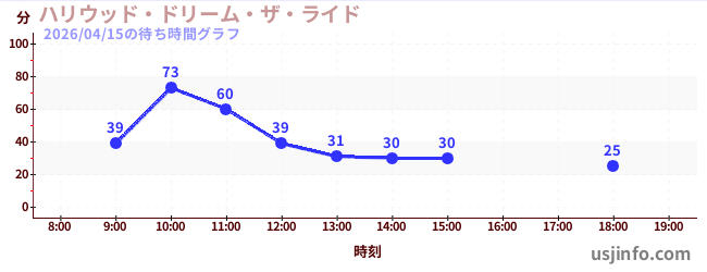 • ハリウッド・ドリーム・ザ・ライド$B$N(B2026年04月15日の待ち時間