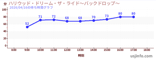 • ハリウッド・ドリーム・ザ・ライド〜バックドロップ〜$B$N(B2026年04月16日の待ち時間