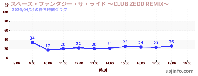 • スペース・ファンタジー・ザ・ライド ~CLUB ZEDD REMIX~$B$N(B2026年04月16日の待ち時間