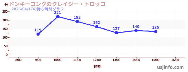 • ドンキーコングのクレイジー・トロッコ$B$N(B2026年04月17日の待ち時間