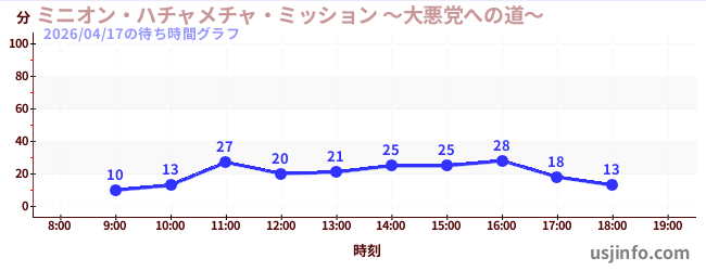 • ミニオン・ハチャメチャ・ミッション ~大悪党への道~$B$N(B2026年04月17日の待ち時間