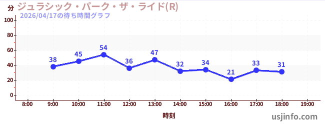 • ジュラシック・パーク・ザ・ライド(R)$B$N(B2026年04月17日の待ち時間