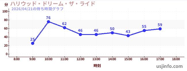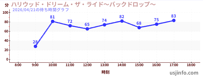 • ハリウッド・ドリーム・ザ・ライド〜バックドロップ〜$B$N(B2026年04月21日の待ち時間