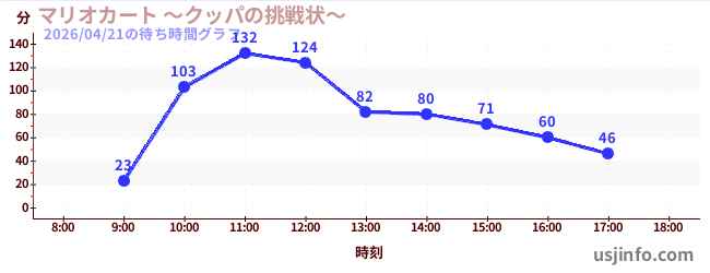 • マリオカート ~クッパの挑戦状~$B$N(B2026年04月21日の待ち時間