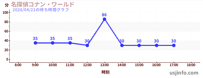 • 名探偵コナン・ワールド$B$N(B2026年04月21日の待ち時間
