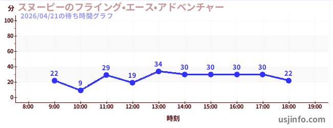 • スヌーピーのフライング•エース•アドベンチャー$B$N(B2026年04月21日の待ち時間