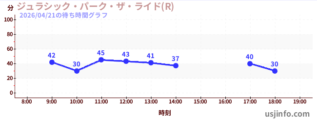 • ジュラシック・パーク・ザ・ライド(R)$B$N(B2026年04月21日の待ち時間
