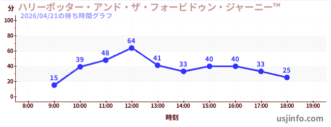 • ハリーポッター・アンド・ザ・フォービドゥン・ジャーニー™$B$N(B2026年04月21日の待ち時間