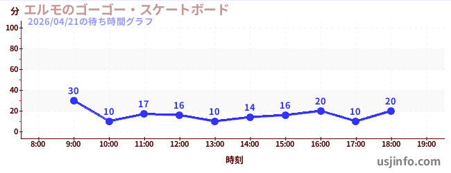 • エルモのゴーゴー・スケートボード$B$N(B2026年04月21日の待ち時間